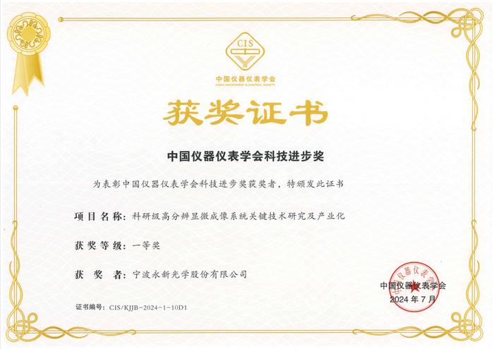 2024年中國(guó)儀器儀表學(xué)會(huì)學(xué)術(shù)年會(huì)于7月28日至8月1日在成都舉行,會(huì)議期間頒發(fā)了中國(guó)儀器儀表學(xué)會(huì)科學(xué)技術(shù)獎(jiǎng),永新光學(xué)“科研級(jí)高分辨顯微成像系統(tǒng)關(guān)鍵技術(shù)研究及產(chǎn)業(yè)化”項(xiàng)目榮獲本年度科技進(jìn)步一等獎(jiǎng)。
